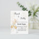 En modern, snyggt och glamorös inbjudan till en Bubly brunch-Möhippa. En vit bakgrund med bubblor, ett par blommor, glasögon. Namn är skrivet med ett modernt handskript i stil. Anpassa och lägg till information om party. Bakåt: rosa med bubblor.