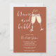En elegant brunch och bubblande inbjudningskort för möhippan med champagneglasögon och namnteckning manuset namn, den här inbjudan till snyggt kan vara personlig med din information i chic med ett brev på en terracotta-bakgrund. Designad av Thisisnotme©