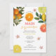 En vacker blommar för vattenfärgen citrus och rosa blommigt ger möhippa brunch. Citron, Orange, kalk och graefrukt: Möhippa Brunch-inbjudan. Perfekten för temat möhippor och bröllop för temat Citrus och Citrus i Medelhavsområdet.