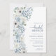 Blågul Möhippa-Brunch-inbjudan. Gå in i en botanisk skönhetsträda och upptäck en fantastisk inbjudan med vackra handmålade vattenfärgade blommigtar. Den ömtåliga dammblått, kräm och vit ros och grönt eucalyptus greenery skapar en elegans, perfekt för din speciella händelse! Teckensnittet blått grått och nypa beröringar av blått kompletterar perfekt den tidslösa utformningen. Låt den här uttryckliga inbjudan uttrycka er roliga romantiska elegans och tidlös stil.