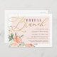 Modern möhippa brunch inbjudningskort för möhippan med faux guld-folie mot ett överlägg av rosa med vackra vattenfärgspennor och ro i persikor- och krämfärgshajer i ett hörn. Informationen visas med en enkel typografi av snyggten.