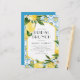 Citrontemat möhippa brunch-inbjudan med vattenfärgade illustrationer av citroner, citronblommar och Medelhavsbrickan mönster. Anpassa genom att lägga till namn, datum, tid och annan information. Denna inbjudan till Citon möhippa brunch är perfekt för möhippor för sommartid och Medelhavsteman.