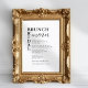 En vacker brunch-möhippa-meny för möhippan firande. Menykortet för elegant brunch har en enkel rubrik med minimal presentation av menyn.