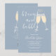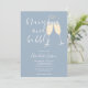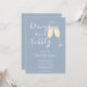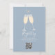 En elegant brunch och bubbel bröllopsdusch inbjudan med champagneglas och signatur skriptnamn, denna stilrena inbjudan kan anpassas med din information i chic bokstäver på en dammig blå bakgrund. Med all din registrerings QR-kod på baksidan. Designad av Thisisnotme©
