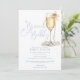Denna dammiga blå eleganta skript brunch och bubblig bröllopsinbjudan kan anpassas med all din speciella evenemangsinformation och foto och register QR-kod på baksidan. Designad av Thisisnotme©