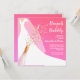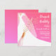 Brunch och bubbel bröllopsfest inbjudningar visar en brud i hennes brudklänning och slöja på en rosa bakgrund med flaska bubbelvin, champagneglas och falska paljetter med dina detaljer i chic vit bokstav. **TIP: Fyrkantig storlek KRÄVER EXTRA POSTAVGIFT. FLER färger i vår kollektion.