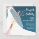 Brunch och bubbel bröllopsinbjudningar har en brud i sin klänning och slöja på en teal bakgrund med en rosa champagneflaska, falska paljetter och rosa glas med dina detaljer i chic vit bokstav. **TIP: Fyrkantstorlek KRÄVER EXTRA POSTAVGIFT. FLER färger i vår kollektion.