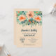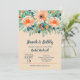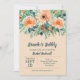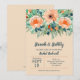 Elegant akvarell av blommor i nyans av persika till orange kantad med teal till jade grön bladverk med er bröllopsfest, par fest detaljer i chic teal bokstäver på en persika bakgrund. **TIP: Klicka på Anpassa för att lägga till, ta bort, flytta och anpassa information, ändra teckensnitt, teckensnittsfärger och bakgrundsfärg. MATCHANDE artiklar i vår butik.