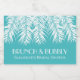 Skapa din egen brunch och bubbly mini flaska med gnistrande vin märkning med dessa personliga etiketter med vita palmblad på en turkos bakgrund - ÄNDRA BAKGRUNDSFÄRG till vad som helst, bara klicka på länken Anpassa ytterligare och använd verktyget för färgval.