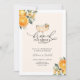 Brunch och Bubly Post-Bröllop Brunch-inbjudan. Anpassa med din information för de nya länkarna. Innehåller ett champagneglas med orange blommar.