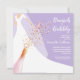 Brunch och bubblande inbjudningskort för möhippa har en brud i sin gåva och slöja på en lavendelbakgrund med en champagne flaska, glas och faux-sekvins och era uppgifter i chic vita bokstäver. **TIP: Kvadratisk storlek KRÄVER EXTRA POSTAGE. Du kan ändra BAKGRUND-FÄRG till vad som helst med vårt designade verktyg och bara klicka på Anpassa ytterligare länk.