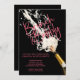 En roligt champagne på svart och dina detaljer i rosa, brunch och bubblande inbjudningskort för möhippan är roligt för ditt speciella tillfälle.