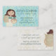 Brunetteflicka eller kvinna som bageri eller konditorikock har affärskort med en söt kvinna med långt hår som håller en påse med mjöl och en blandskål, personlig med ditt val av bakgrundsbild färg.