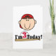 Baseball 3rd Birthday-design med en brun basebollspelare med rött lock, baseboll, fladdermus och text som lyder "I'm 3 Today!".