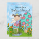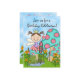 Cute Brown Hved Fairy Princess med groda, damm, svamp och blommor Födelsedagsfest inbjudan för flickor.