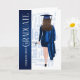 Brunette Hair Blue Cap och Gown Female Student Kort