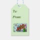En brunettälv i rött och grönt i blått och grönt tillsammans med snöflingor. Hon är leksak, inslaget Julklapp och julsymboler.