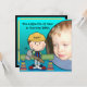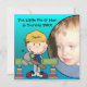 En liten brun byggarbetare i en gult med hård hatt med en hammare och flera andra byggarbetare med områden som du enkelt kan anpassa med ditt barns foto- och födelsedagsfest-specifikationer på Lille Fix-it Man-födelsedagsinbjudningar! Underbar för födelsedagsfester för byggnation eller för små mattteman!