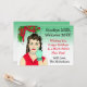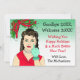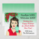 Brunette Retro Dam Vänder på fågeljulen och nyårskorten.