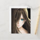 Brunhårig Animeflicka Med Blå Ögon Vykort