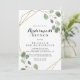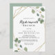 Den här guld-geometriska brudesjungchduschinbjudan är perfekt för en rustisk möhippa. Konstruktionen har handdragna botaniska gröntar eukalyptus grenar och löv som adorerar elegantens geometriska ram.
