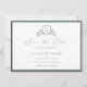 BRUNSWICK VAPENSKÖLD, bröllop spara datum. Vintagen inspirerade till vapensköld av botaniska blommigtar konst monogram. Funktioner, en mörk grönt typografi för elegant utformar stil blandning av skript och fet text. Solid grönt färg backar upp.