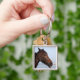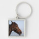 Brunt hästhuvud fyrkantig silverfärgad nyckelring
