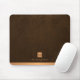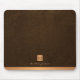 Luxury exklusiv tittar kontor eller en monogrammad musknapp med en faux metallisk guld glitter-ruta av koppar med ditt monogram namn initialer och ett mousserande rand över en snyggt mörk brunt läderbakgrund. ++++++++++++++ Lämpligt för professioneller för småföretag, företag eller företag i oberoende, personmärknings- eller stilistorspecialister, makeup-konstnärer eller skönhetsalonger, boutique- eller butikschefer. ++++++++++++++++ Observera att effekterna av läder struktur och glitter gnistra är tryckta.