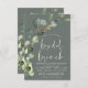 Eucalyptus Greenery Succulent Botanical Watercolor Vår Sage Grönt Bröllop Möhippa - Möhippa Brunch inbjudningar på vit bakgrund - innehåller vacker och elegant manustypografi med moderna botaniska löv och grön för att speciella Briden ska vara firande.