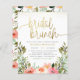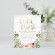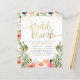 Den här möhippans brunch-inbjudan innehåller en arrangemang av vattenfärgblommor i nyans av rosa och vitt i trädgårdsgrej. "Möhippa brunch" är skrivet i modern manuskalligrafi, med snurrar i båda ändar som når kant i inbjudan. Din duschinformation visas nedan i enkel typografi. Som en del av budgetvalet här på Zazzle, komar dessa inbjudningar inte med kuvert och passar inte perfekt in i ett kuvert av standardstorlek. Den närmaste storleka är A6, men det skulle finnas en lucka på ungefär en halv tum. Om du inte misstycker kan du använda så allmänt tillgängliga A6-kuvert. I annat fall kan denna design överföras till ett standardformat 5 x 7 (som levereras med kuvert) med hjälp av designöverföringen verktyg.