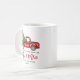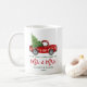 Modern penselskrift Vår första jul som Mr. och Mrs. Watercolor Vintage Red Lastbil med Julgran Coffee Mugg - Red and Grönt