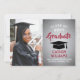 Meddela en högskoleexamen eller högskoleexamen och inbjudan familj och vänner att fira med anpassningsbar fotoröd, grått och inbjudningar till vita fester. Bild och formuleringar är enkla att anpassa och färg är lätta att ändra med Zazzle-konstruktionen verktyg. Den här mallen är konfigurerad som ett kombinationsmeddelande och en gruppinbjudan som kan anpassas med valfri information, t.ex. föräldrars namn, speciella arvoden, graderingstitel, favoritinspirationstecken, student framtida planer eller nya adress. Utformningen har en faux borstad metallbakgrund, ett murbruk, modern kalligrafi för elegant, typisk vintage och ett favoritfoto, t.ex. ett överordnat bild eller en bild från startceremonin. Observera att silver är tryckt grått ombre färg, inte metallfolie. Detta kort i studenten är ett snyggt för att tillkännage en speciell dag i firande. Grattisar till student!