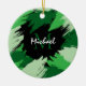 Brushstrokes skuggor av grönt namn med monogram julgransprydnad keramik
