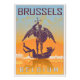Brussels vintage poster in orange and blue textured background with skyline in white
