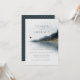 Börja planera för din speciella dag med de här eleganterna-inbjudningarna. Den här designen har en vattenfärgsmålning av ett landskap i sjö och gräs träd med klassisk skripttypografi. Kort tillbaka till ett faux guld geometric mönster mot en marin blå bakgrund.