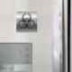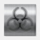 Biofarosymbolen i realistisk form avslutar, skär ut, skiktar, borstat stål struktur.