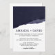 Skapa ett påstående med vår inbjudan till tankbröllop med marktäcksfärg i marinen med elegant mörk med blå vattenfärgremsor överst och modern kalligrafi i tidslingslös layout. Den här unika designen lämnar ett bestående intryck på dina gäster och gör din speciella dag mer sofistikerad