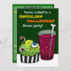 En Halloween MidinParty-inbjudan med en grov tittar grönt Cupaka med ögonbollar och mask som sticker ut toppen bredvid en ovanligt torr färgad med en benomrörare. Inbjudan era vänner runt för en äcklig fest och se vem som har den starkaste magen! Anpassa all text till kostym som du behöver! Illustrationer av Jojo Knebone - Aka MuffinPuffART!