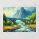 En majestätisk bron sträcker sig över en flod som rinner mot bakgrunden av de torra bergen som badats i solljus. Lush grönt-skogarna på båda sidor av floden bidrar till den stilla och lugna atmosfären.