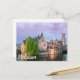 Painting of Bruges old town and Belfry torn with rosa himlar under sunset, Bruges, Belgien.