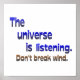 Denna lustiga slogan påminner er om att även om den fart man just slet ut skulle vara av den tysta men dödliga varianten, så finns det något som alltid vet när man släpper ut gas, oavsett hur diskret man är. Texten i bilden säger: " The Universe is Listening. Bryt inte vinden." Färg i ord är blått och orange. Vår grafik gör en perfekt-gag-gåva till alla som kan rensa ett rum med sina stinkande biljetter. Anpassa designen genom att lägga till ett namn eller ett annat speciellt meddelande. Den blå eller vita bakgrunden färg kan också vara en personlig till ett av dina val.