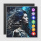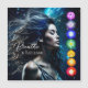 Fredlig ai-konst som skildrar en vacker kvinna med hårblåsning i vinden och en söt blå himmelsblå eterisk bakgrund. Citat, "Breathe and Release". Söt belyste chakras andlig art.