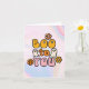 Skicka en glad Halloween-hälsning med denna retroinspirerade ”Bu till dig”-design. Med lekfulla bubbelbokstäver, leende spöken och ljusa blommor är detta kort perfekt för barn, lärare, vänner eller någon som uppskattar ett roligt och lättsamt Halloween-tema. Ett sött sätt att sprida säsongens glädje utan de läskiga vibbarna.