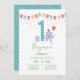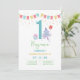 Färgbläck av ludd-roligt med en röd ballong med presentbanderoller 1:a födelserbjudandekort. Anpassa den med ditt namn och din text.