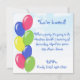 Färgfulla ballonger mot blå himmel och molnbakgrund. En perfekt födelsedagsinbjudan för barn i alla åldrar (och även vuxnor)