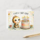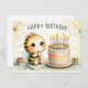 Den här charmiga födelsedagskortet ger en "bibriljant" touch till varje fest. Det har en bedårande bi-karaktär med stora, gnistrande ögon och en mild leende, prydd med en blomsterkrans. Biet gör en önskan, sittande bredvid en livfull, pastellfärgad födelsedagstårta med brinnande ljus som är redo att blåsas ut. En liten muffins med ett rosa band och en snyggt inslagen present bidrar till den festliga atmosfären. Bakgrunden är fylld med mjuk konfetti och akvarellstänk, som skapar en fantasifull och hjärtlig scen som är perfekt för att skicka glada födelsedagsönskningar till någon speciell.