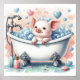 Söta djur som tar ett bubbelbad. Skulle se bra ut i ett barnbadrum.