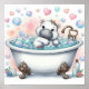 Söta djur som tar ett bubbelbad. Skulle se bra ut i ett barnbadrum.