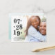Chicens fotospara datumkorten innehåller ett vågrät- eller landskapsinriktat foto med en vit övertoning på den lämnat sidan, där du visar bröllop-datumet i kol-grått med en unik ojämn inställning för ett modernt utseende. Anpassa med namn, "spara datumet" och bröllop under. Brevkort återgår om du vill visa ytterligare information om hur du sparar datuminformation, inklusive webbplatsen bröllop, med returadress och utrymme för mottagaradressering, på en ren vattenfärgad övertoning med rand i en brinnande, eterisk turkoshakaakaakaakaliknande akvariet.