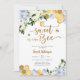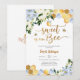 Fira ankomsten av en liten en med denna charmiga inbjudan till baby shower med motiv av bin och bikakor. Med ömtåliga blå och vita blommor, gyllene bikake-ackcenter och lekfulla bin blandar denna design elegans med lekfullhet. Perfekt för en söt-som-kan-vara-fest, den sätter tonen för ett glatt firande samtidigt som den framhäver dina evenemangsuppgifter vackert. Idealiskt för blivande föräldrar som älskar naturinspirerade, bin-tema-fester, är denna inbjudan både stilren och minnesvärd.